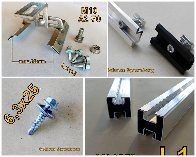 Hochfester Montagesatz aus perfekt aufeinander abgestimmten Einzelkomponenten für 1-10x Modul vertikal verlegt zur Klemmung auf der langen ModulseiteKonzipiert für schwerste Wind / Schneelasten und SchrägenDIE DACHHAKEN IM DETAIL:Materialstärke: 4-5 mmverstellbar, aus Edelstahl A2 inkl. eingeklebten EPDM-Gummis, Aufnahme für M10 Vierkantschraubeink. selbst schneidenden Verschraubung für Stahlunterkonstruktion & Sandwichplatten mit Bauzulassung