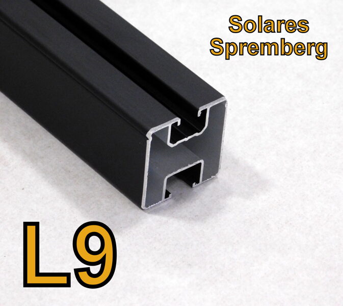 1x 10-600cm Unterkonstruktion Aluminiumprofil 40x40mm M8 Nut oben M10 Nut unten Profiness L9 schwarz
